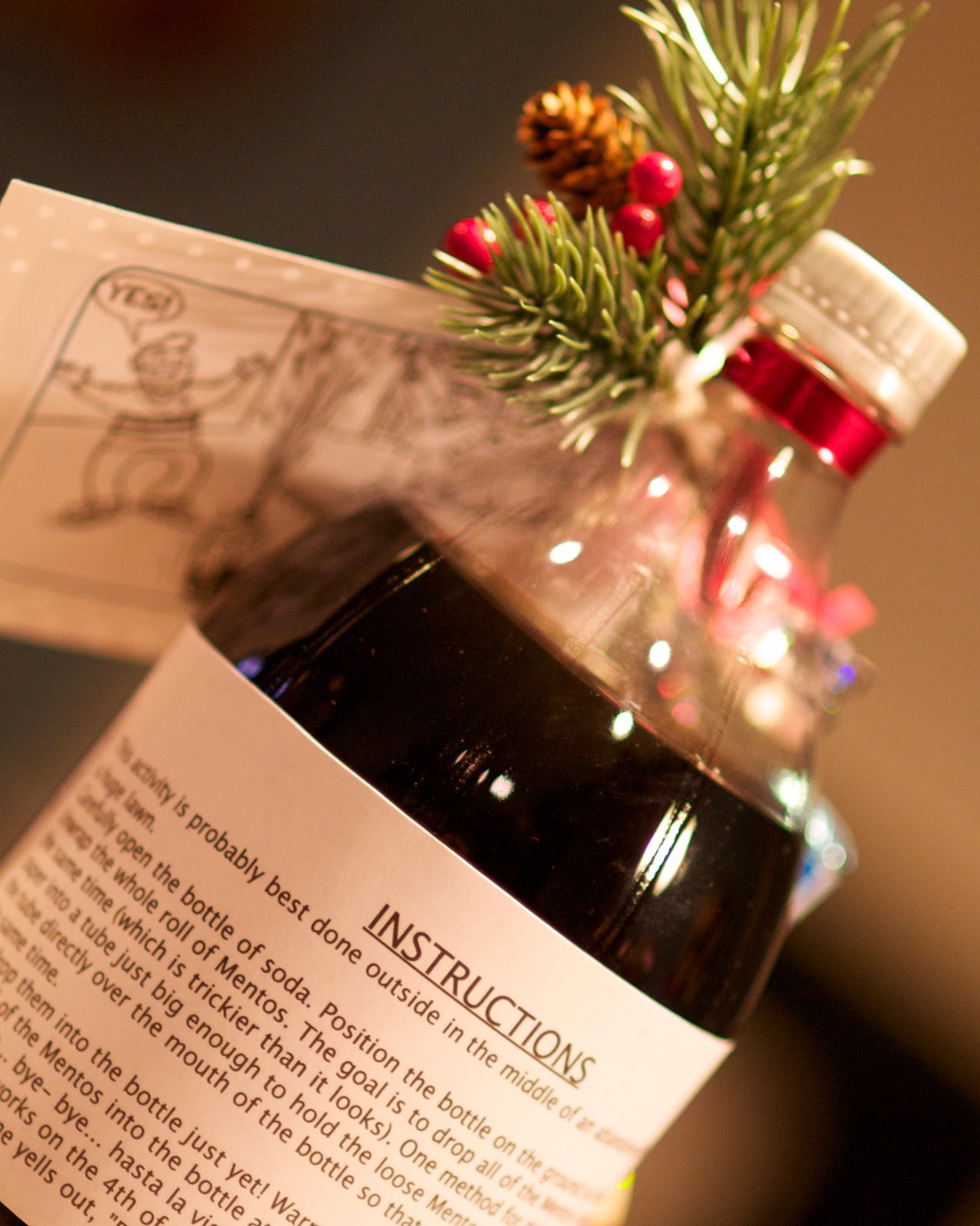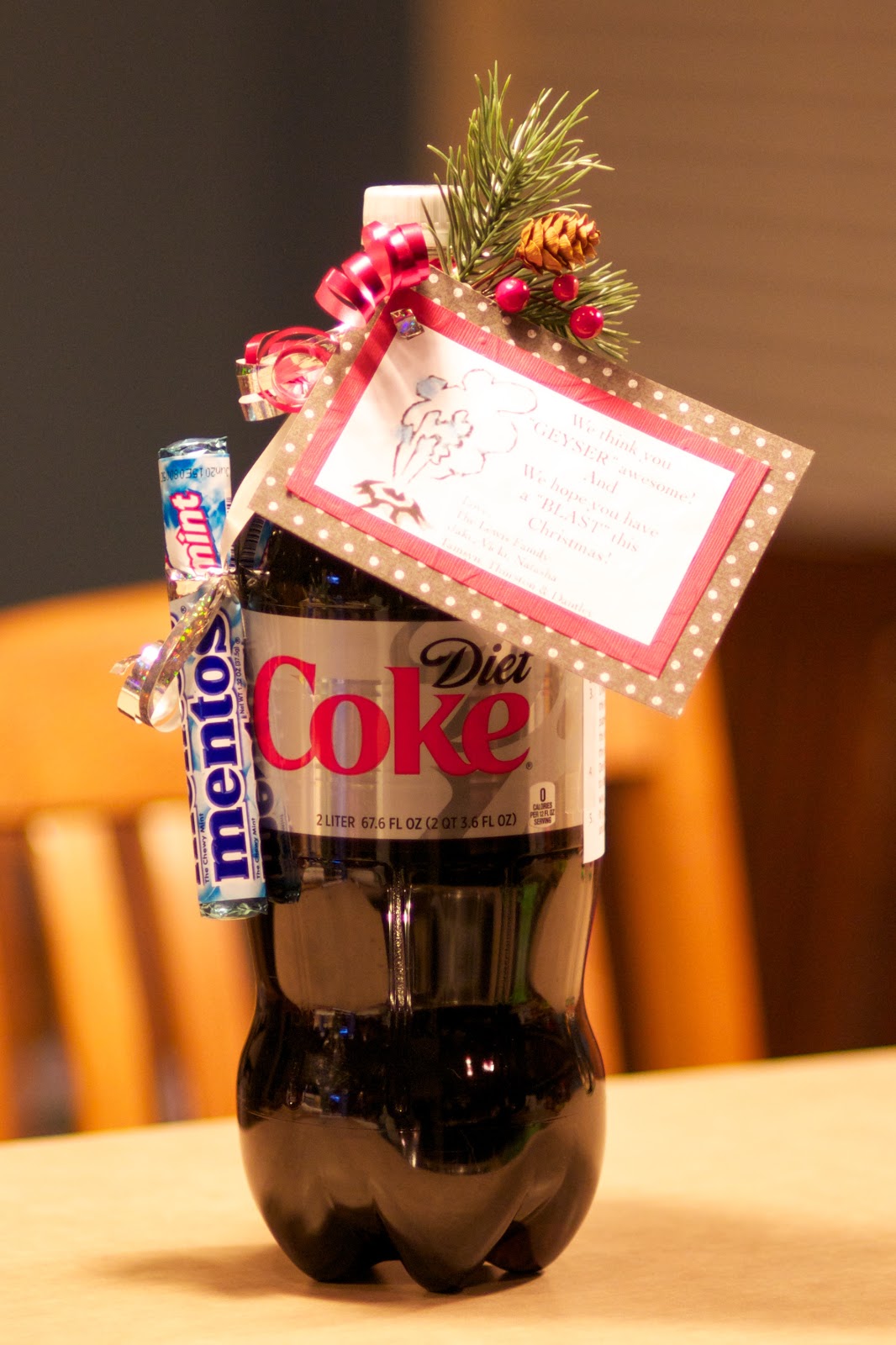 I bought a couple of cases of Mentos thinking I would use them in little gift bags. When my daughter Natasha saw them she said "all you need now is a bottle of diet coke!" -- We went to "Wreck it Ralph" over Thanksgiving break, so I am sure that is why the idea came so quickly.